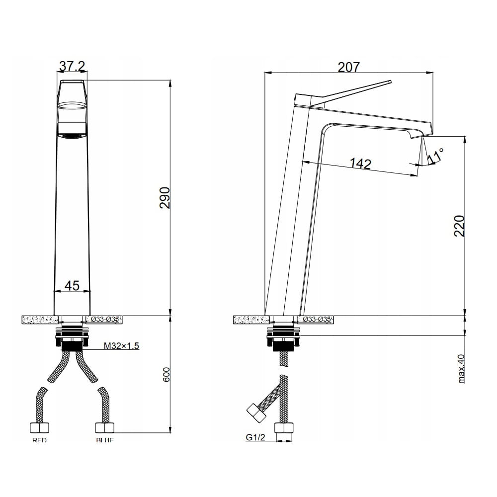 | Wysokość od podstawy do perlatora | 220 mm |