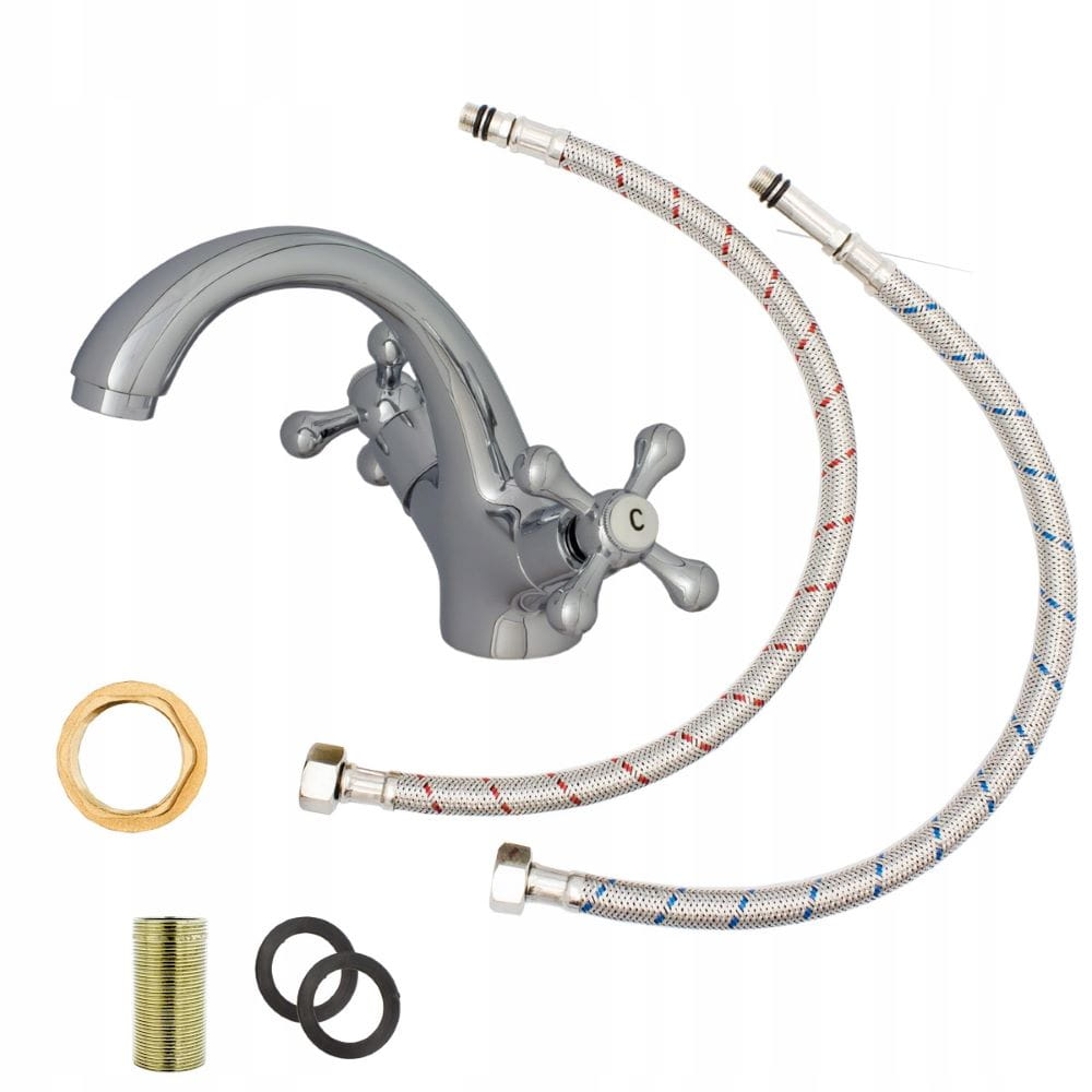 Bateria umywalkowa stojąca łazienkowa retro chrom