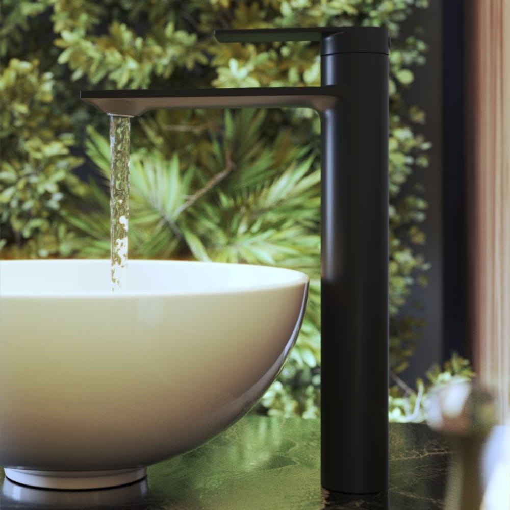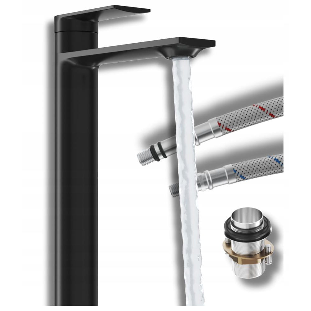 Bateria umywalkowa wysoka stojąca czarna Cabo do łazienki