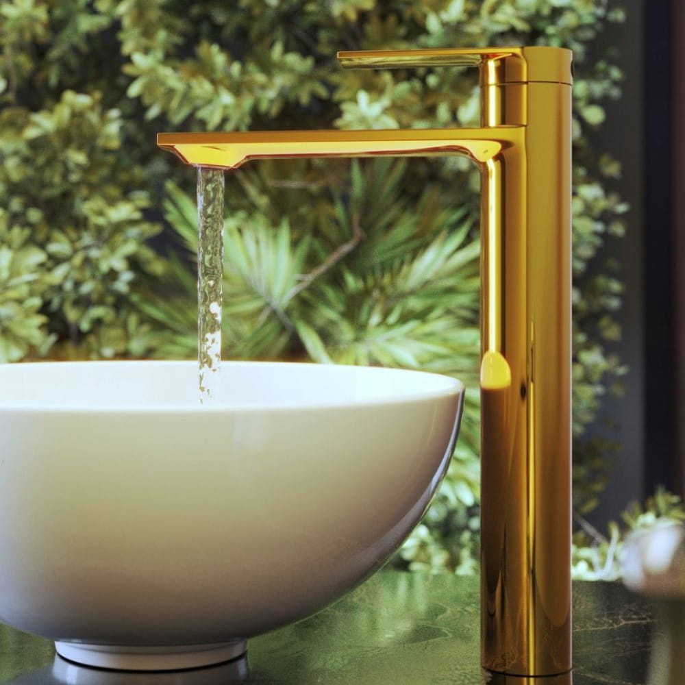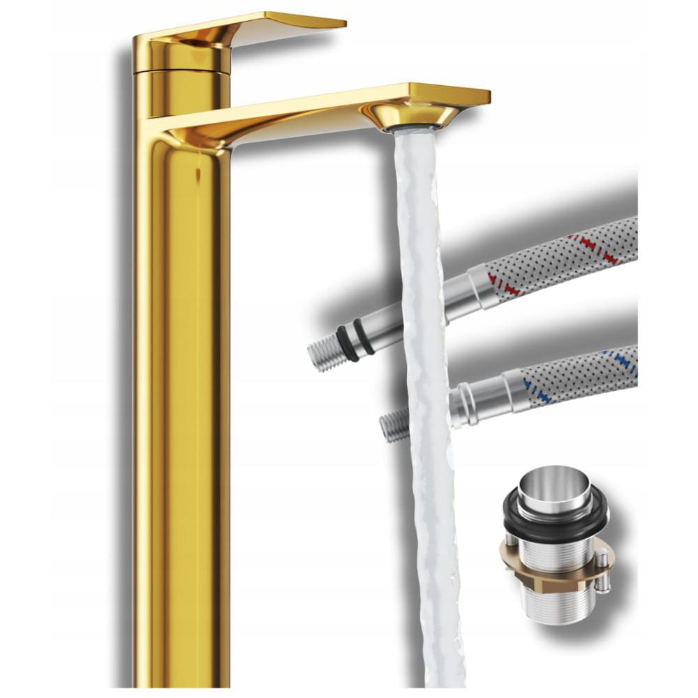 Bateria umywalkowa wysoka stojąca złota Cabo do łazienki