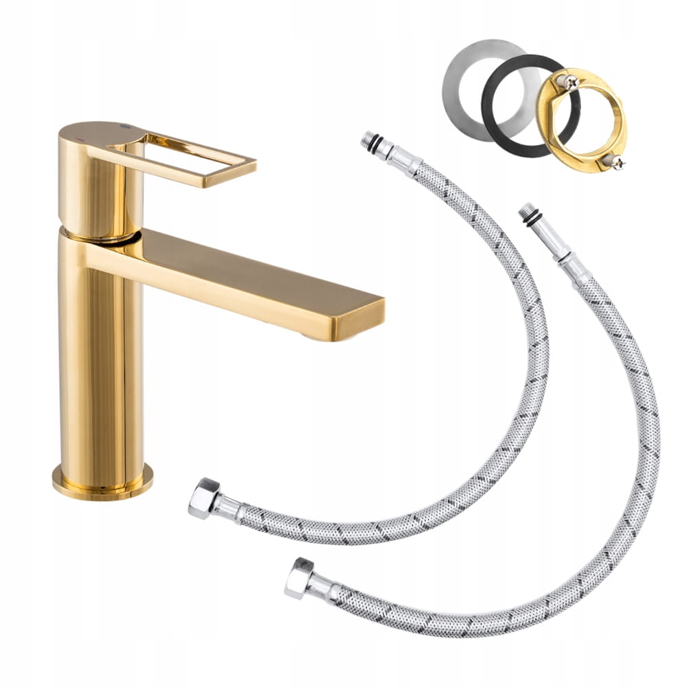 Bateria umywalkowa złota nowoczesna niska łazienkowa mosiężna kran Arma