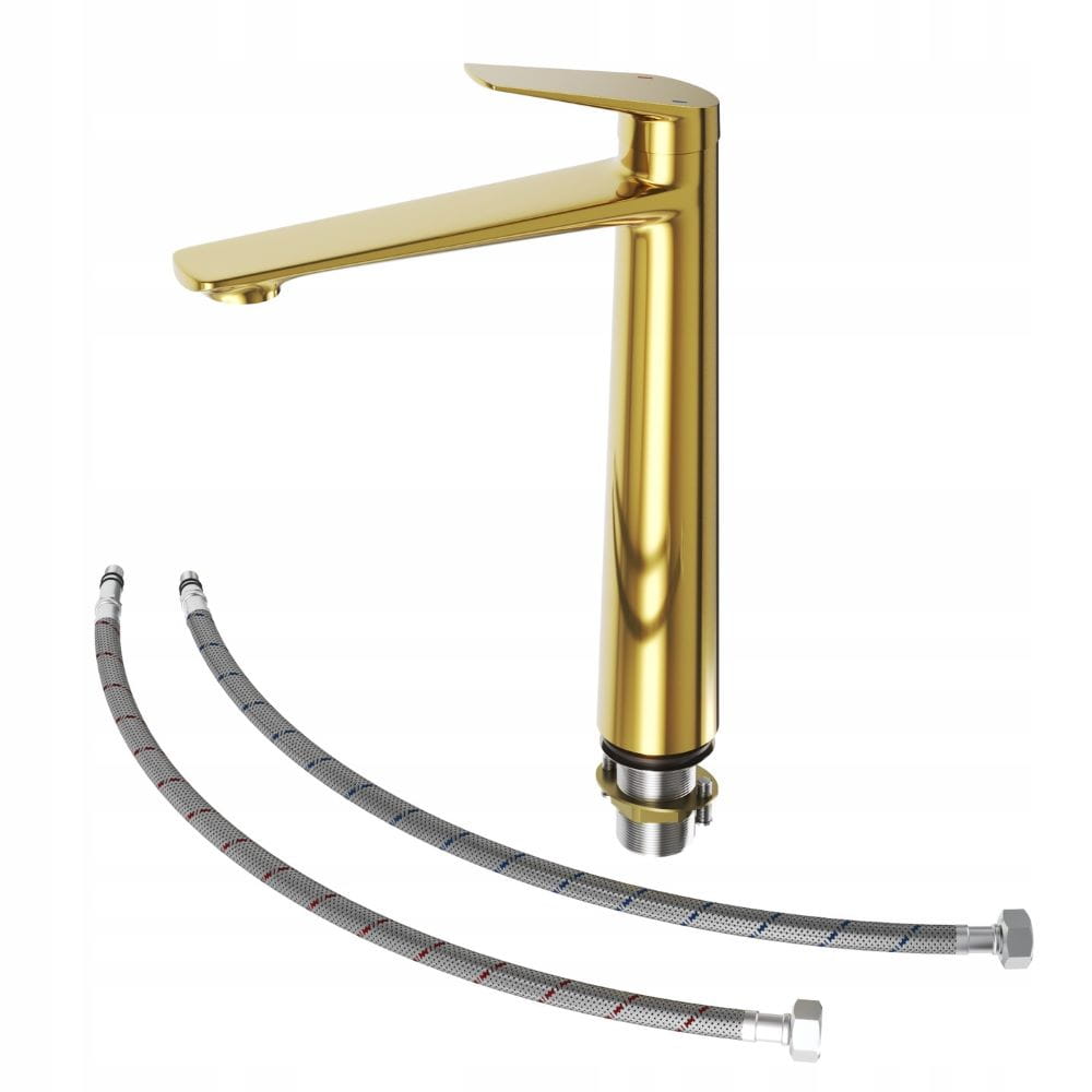 Bateria umywalkowa złota wysoka łazienkowa mosiężna stojąca kran Nave