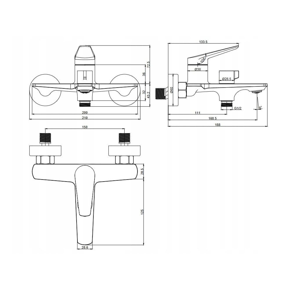 Zasięg wylewki od ściany do perlatora 168,5 mm