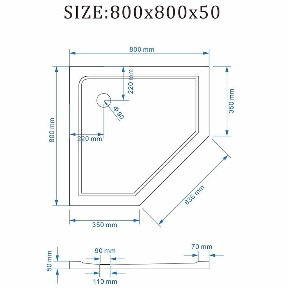 Brodzik prysznicowy kamienny pięciokątny Rave czarny 80 x 80 cm