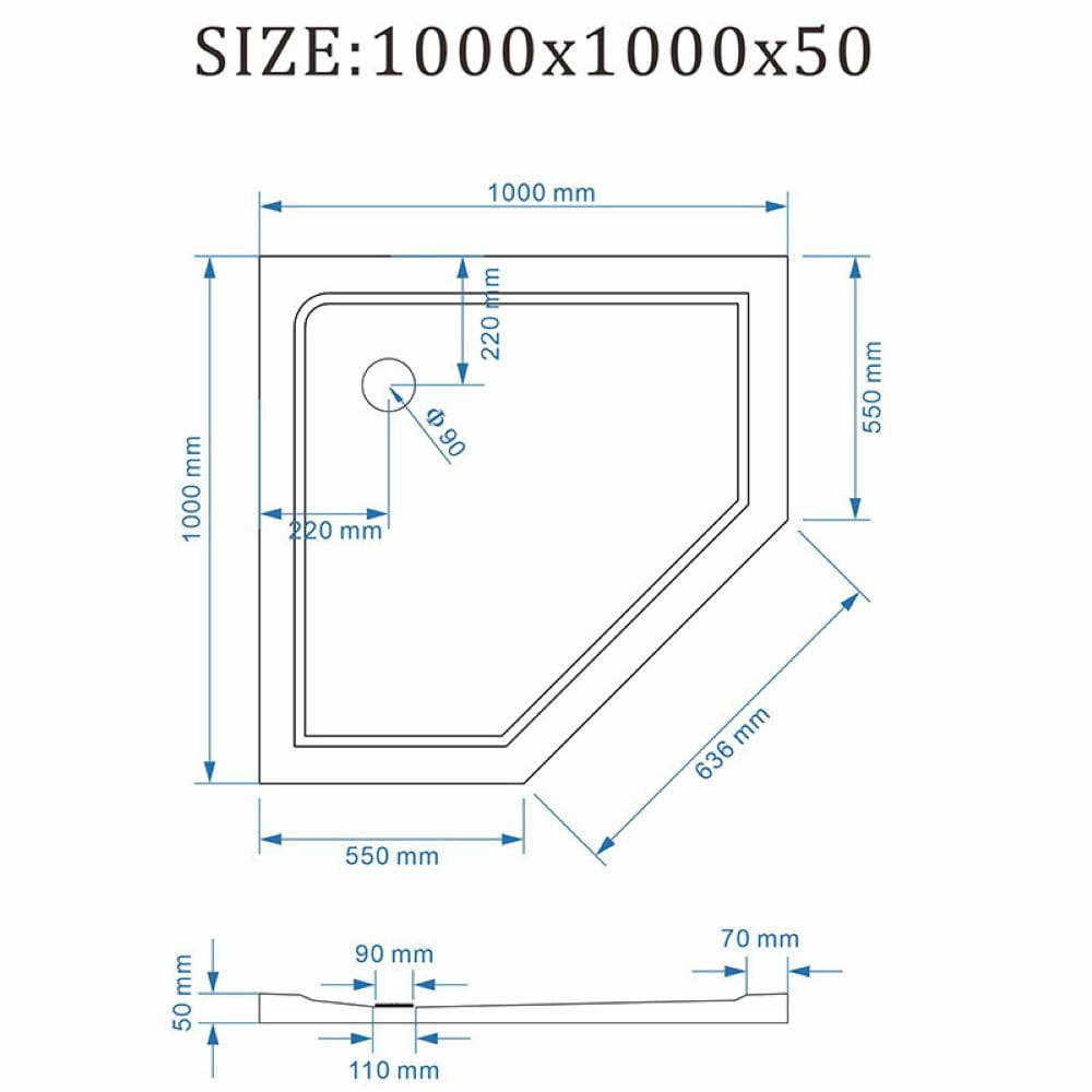 Brodzik prysznicowy kamienny pięciokątny slim Rave czarny 100 x 100 cm