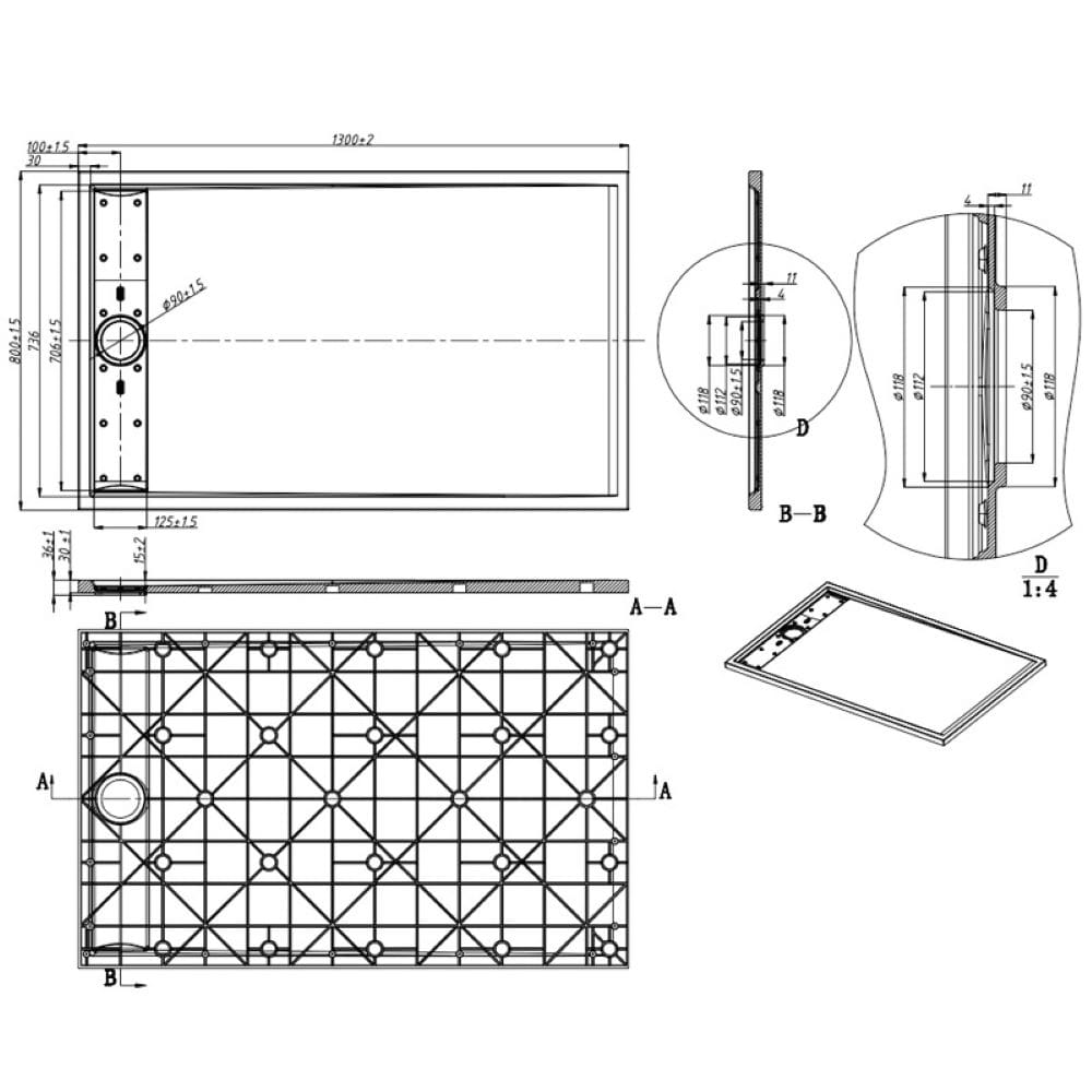 Zestaw zawiera: brodzik ze wzmacnianym spodem dodatkowym włóknem szklanym (wyposażony w antypoślizgową powierzchnię) oraz syfon brodzikowy z uszczelkami (posiadający element umożliwiający czyszczenie od góry).