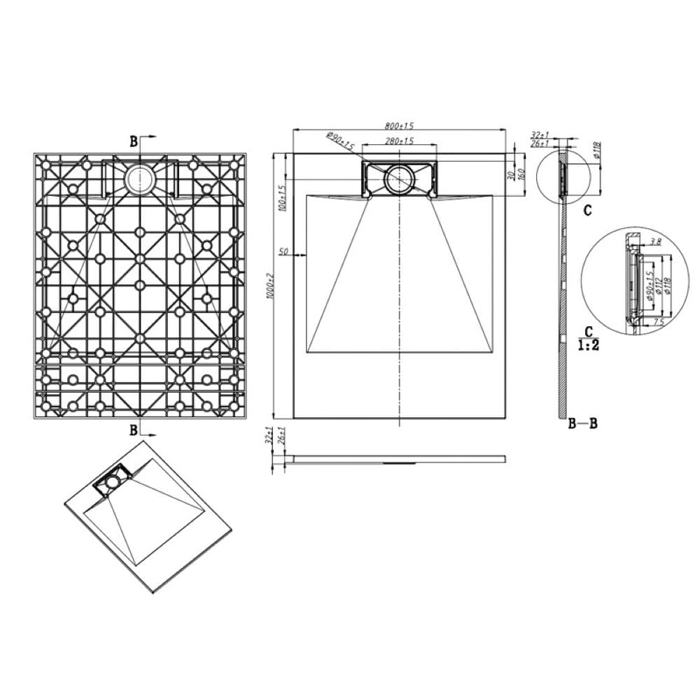 Zestaw zawiera: brodzik ze wzmacnianym spodem dodatkowym włóknem szklanym (wyposażony w antypoślizgową powierzchnię) oraz syfon brodzikowy z uszczelkami (posiadający element umożliwiający czyszczenie od góry).