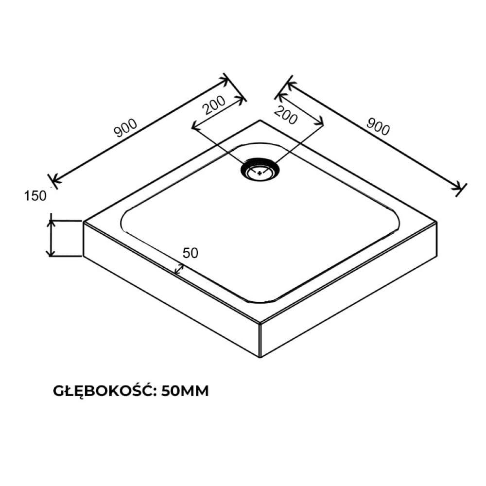 Brodzik prysznicowy kwadratowy wysoki SXL02B czarny 90 x 90 cm