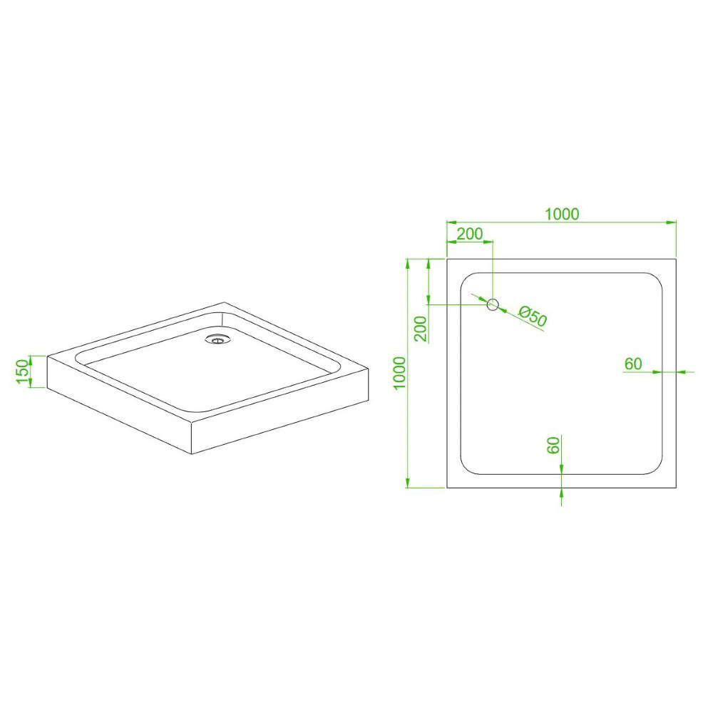 Brodzik prysznicowy kwadratowy wysoki SXL02C czarny 100 x 100 cm