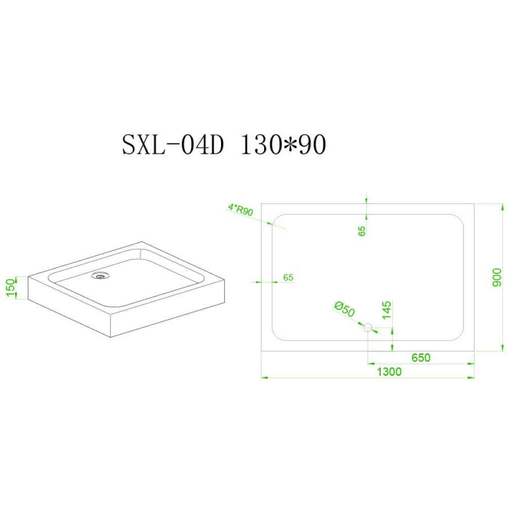 Brodzik prysznicowy kwadratowy wysoki SXL04D biały 130 x 90 cm