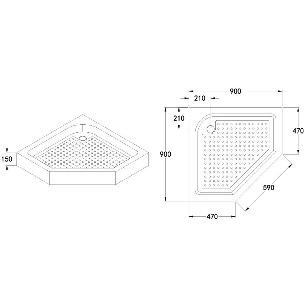 Brodzik prysznicowy pięciokątny wysoki SXL07B czarny 90 x 90 cm