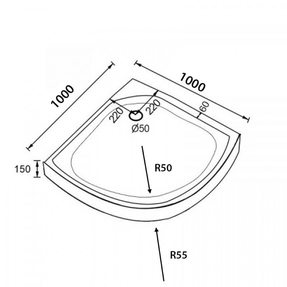 Brodzik prysznicowy półokrągły wysoki SXL01C biały 100 x 100 cm