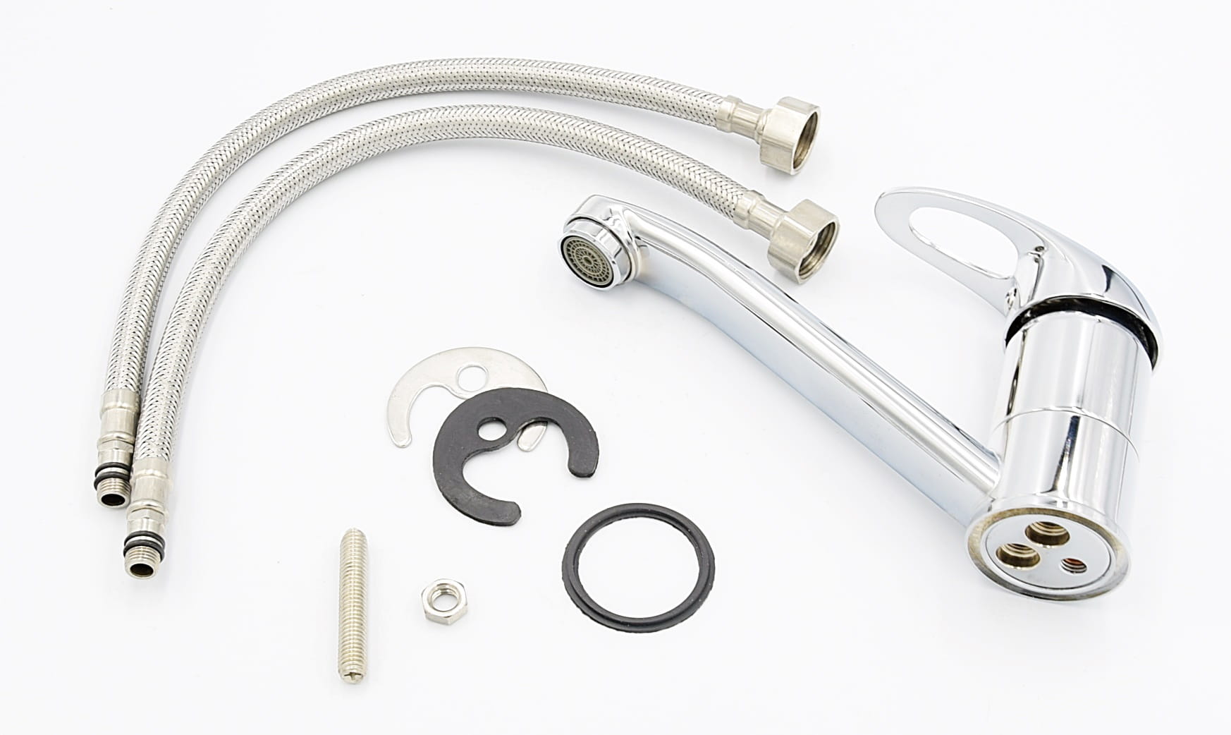 DAX 2 bateria umywalkowa kuchenna o wysokiej jakości, wykonana z mosiądzu, w kolorze chrom/połysk. Głowica ceramiczna. Powłoka baterii odporna na przebarwienia i wysoką temperaturę. Perlator napowietrzający, wymienny m24. Standardowy otwór montażowy 35 mm.