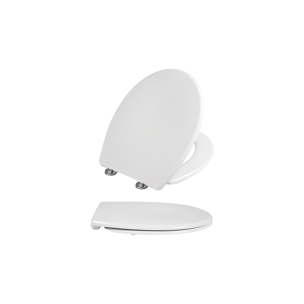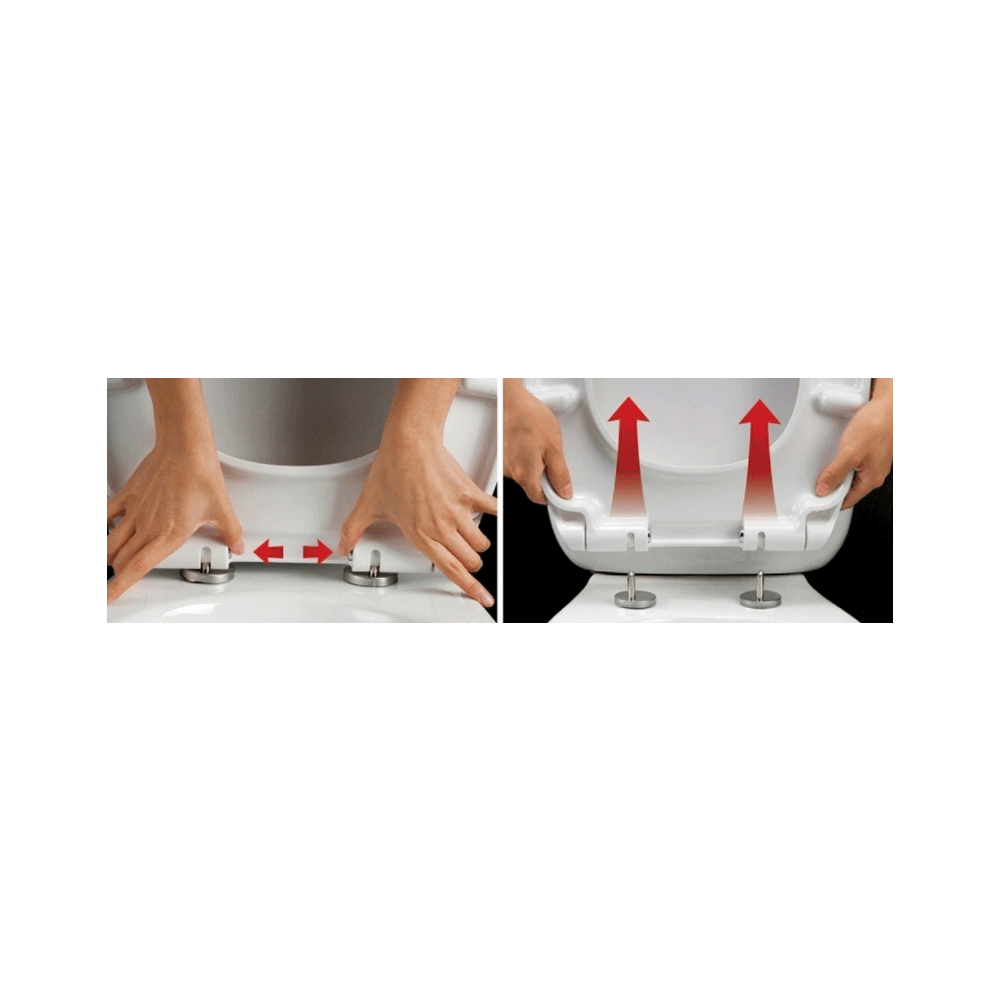 Deska sedesowa wyposażona w wytrzymałe zawiasy z mechanizmem wolnoopadającym i systemem szybkiego wypinania. Specjalny mechanizm zawiasów sprawia, że unikamy hałasu przy zamykaniu klapy (opadają obydwie klapy), a także uszkodzeń spowodowanych uderzeniem o krawędź miski WC. Materiał wykonania duroplast. Wymiary są standardowe (pasuje do wszystkich standardowych misek WC). System Easy Clean.