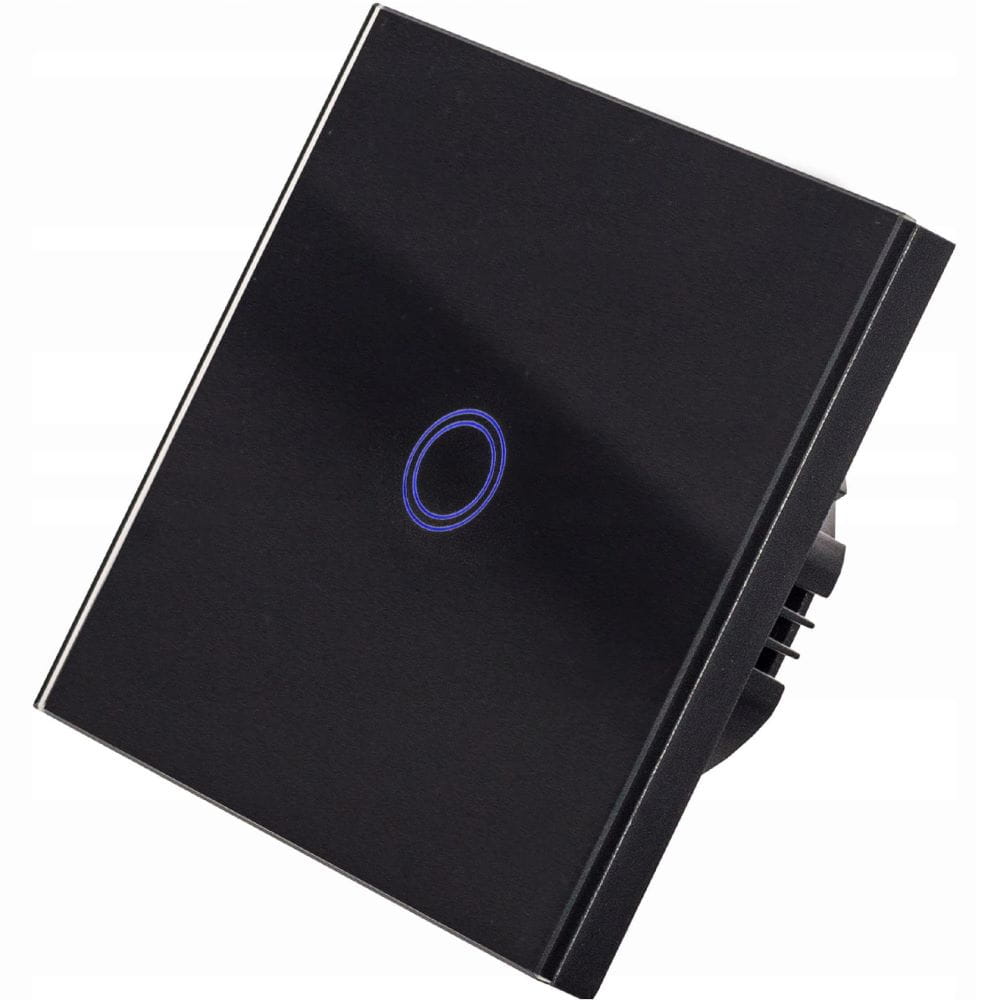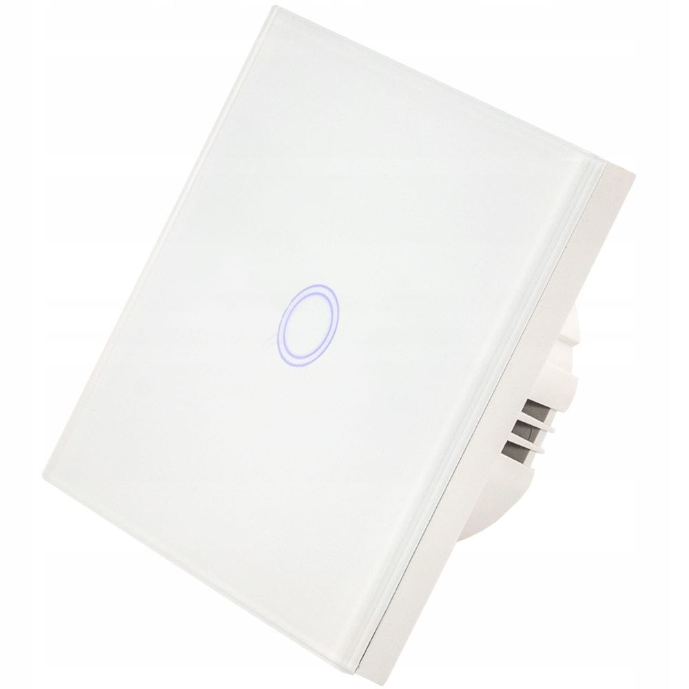 Pojedynczy włącznik dotykowy, szklany w kolorze białym/czarnym z możliwością sterowania pilotem (WiFi). Panel zostały wykony ze wzmocnionego szkła, odpornego na odbarwienia. Powierzchnia łatwa w czyszczeniu. Element dotykowy jest bardzo czuły, gdy jest wyłączony podświetla się na niebiesko. Do zestawu dołączony jest adapter LED, który pozwala zastosować włącznik nawet dla lamp z diodami LED. Włącznik pasuje do standardowej puszki okrągłej 60 mm. Możliwość sterowania światłem za pomocą pilota (dostępny na osobnej aukcji) lub aplikacji na telefon (m.in. Tuya Smart).
