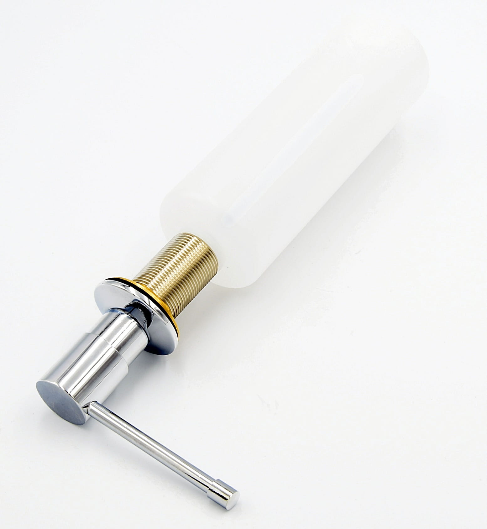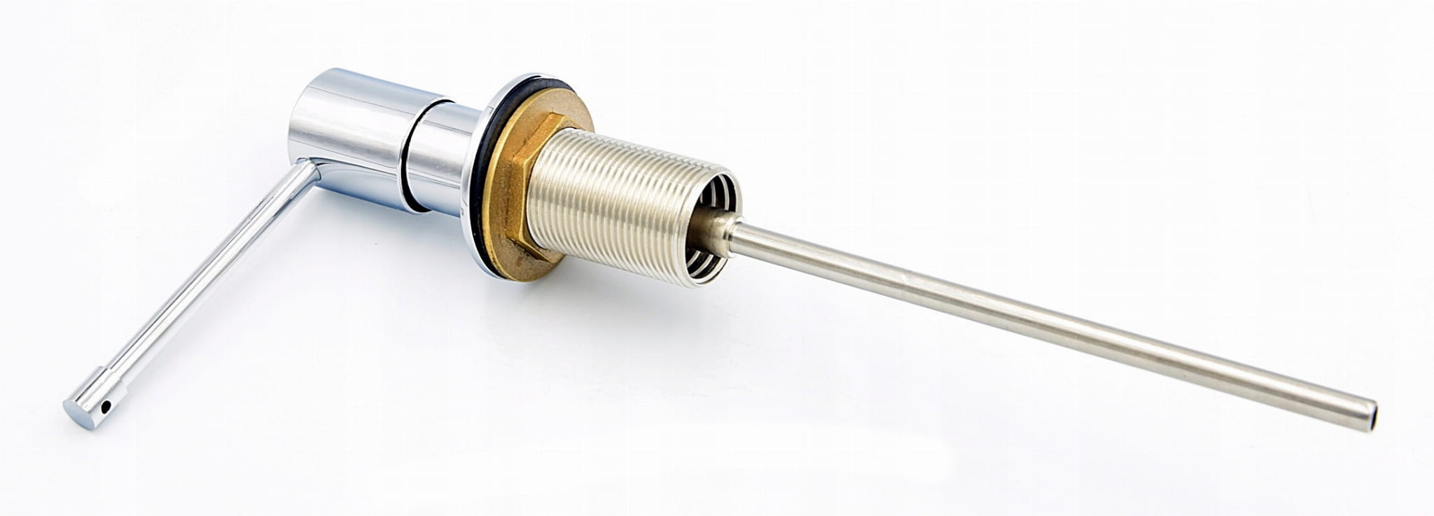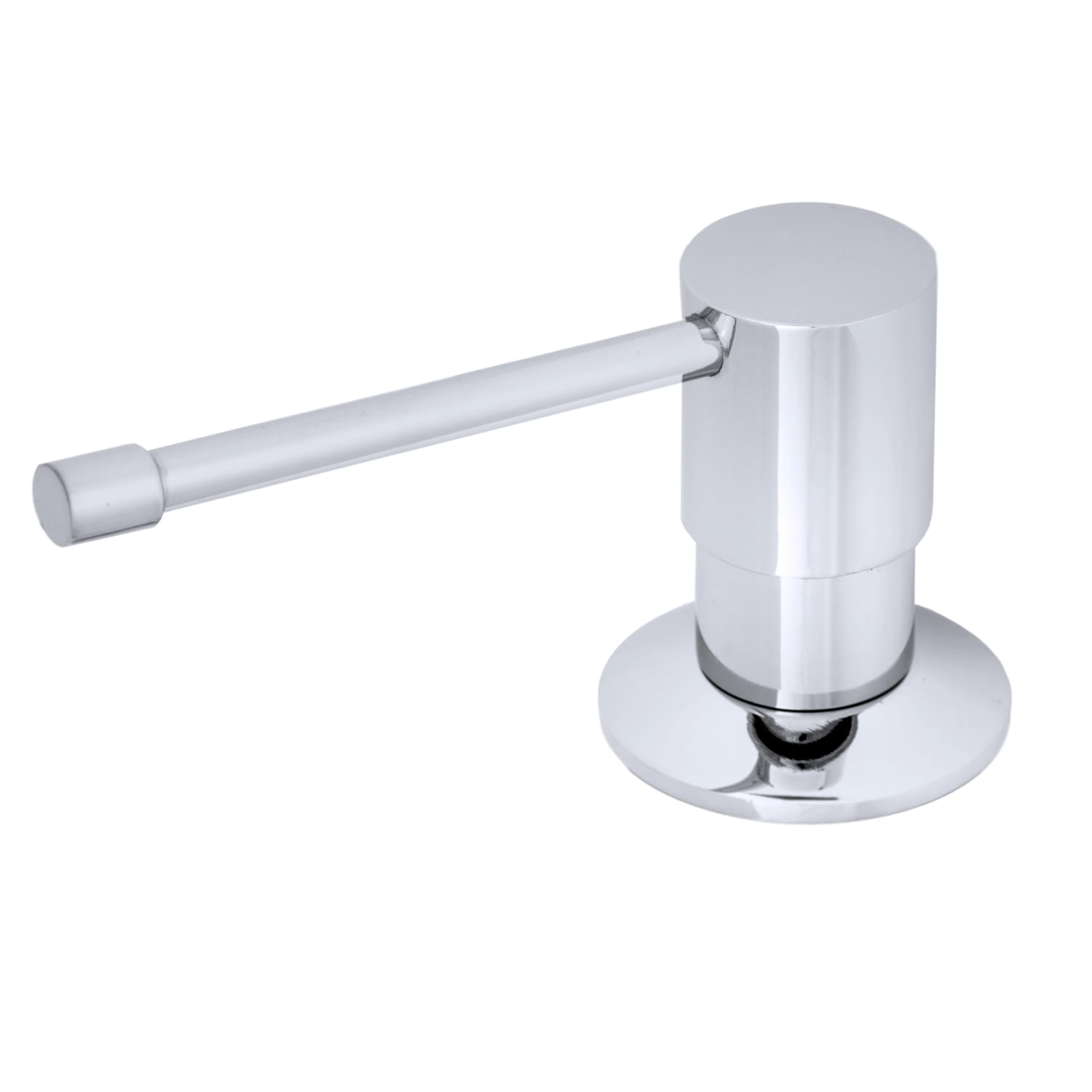 Dozownik lux do zlewozmywaka wykonany z mosiądzu i stali nierdzewnej, pojemnik z tworzywa PCV, w kolorze CHROM. Napełniany od góry. Obrotowa końcówka 360'.