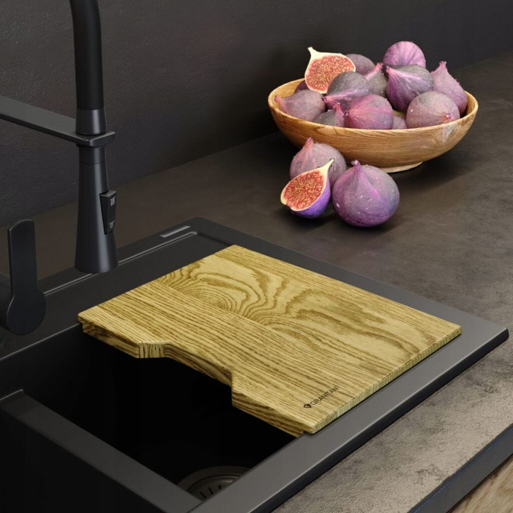 Dedykowana deska drewniana jest praktycznym, a zarazem estetycznym uzupełnieniem zlewozmywaka i przestrzeni kuchennej. Produkt wykonany z naturalnego drewna dębowego. Drewno posiada naturalne właściwości bakteriobójcze, dlatego odpowiednio pielęgnowana deska może posłużyć przez wiele lat. Jej naturalna powierzchnia sprawia, że nie tępi noży. W przeciwieństwie do produktów plastikowych (w których nacięcia sprzyjają rozwojowi bakterii) drewniane deski mają zdolność do zasklepiania drobnych nacięć na powierzchni co sprawia, że są bardzo trwałe. Zarówno rozmiar, jak i kształt zostały dopasowane stylistycznie do zlewu, by razem tworzyć spójny, elegancki i funkcjonalny zestaw. Produkt posiada silikonowe podkładki, które zabezpieczają deskę przed przesuwaniem się podczas pracy.
