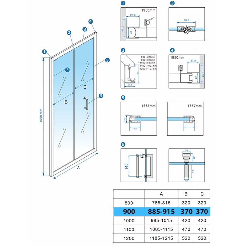 Drzwi prysznicowe KZ11B chrom 90 cm 6 mm