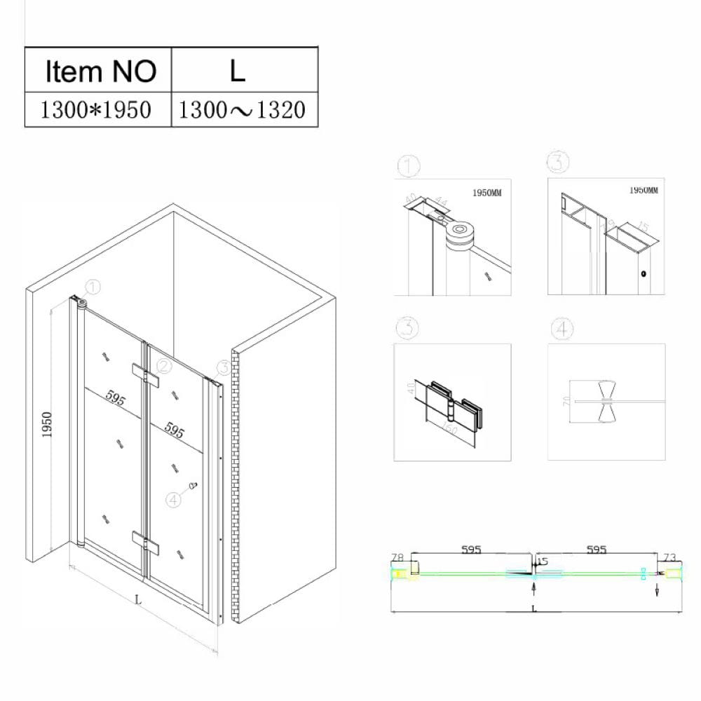 Zestaw zawiera: szyby z technologią NANO GLASS o grubości 6 mm, aluminiowe profile z regulacją 20 mm, podwójne stalowe rączki, aluminiową listwę progową, komplet wysokiej jakości uszczelek, komplet śrub montażowych, stalowe zawiasy, uszczelkę progową oraz listwę "waterproof" między zawiasami.