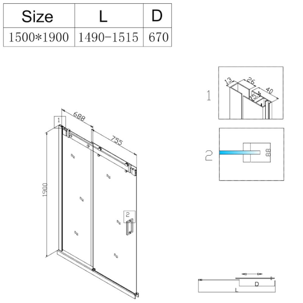 Istnieje możliwość dostosowania długości drzwi prysznicowych do mniejszych rozmiarów nawet o 50 mm! Należy skrócić profil górny samodzielnie TYLKO I WYŁĄCZNIE od strony drzwi (szyny po której jeżdżą rolki, poprzez jej ucięcie na dowolną długość).