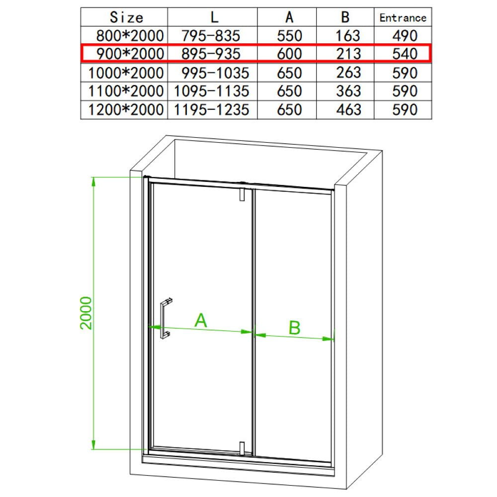 Drzwi prysznicowe SH08B czarny 90 cm 6 mm