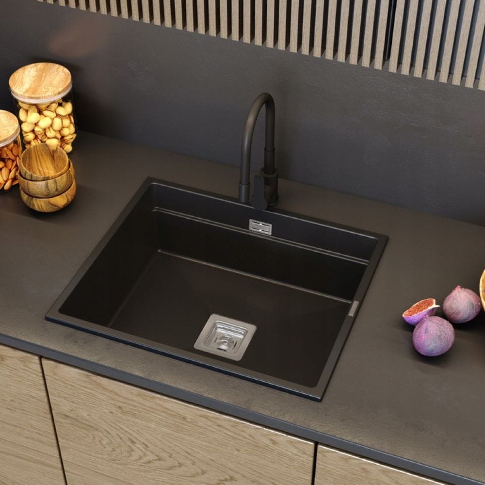 Zestaw Milano - zlewozmywak granitowy czarny - bateria kuchenna - koszyk - zaślepka
