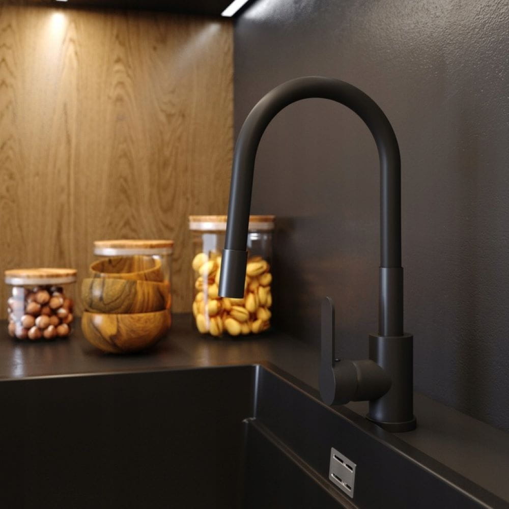 Bateria kuchenna czarna z wyciąganą wylewką Oxi