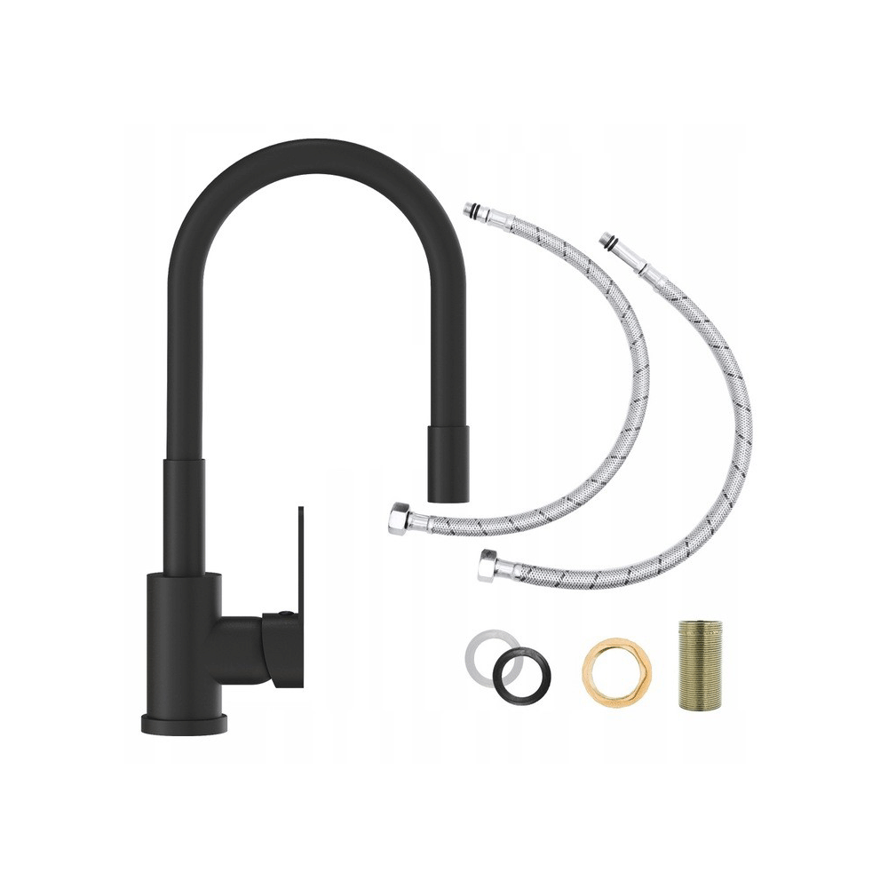 Bateria kuchenna Giro z wyciąganą wylewką czarna 3 strumienie wody