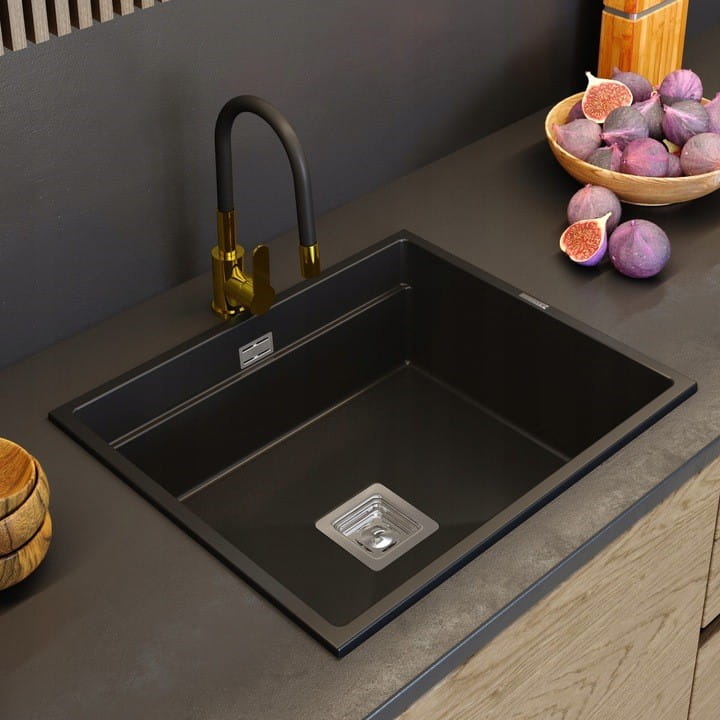 Zestaw Milano - zlewozmywak granitowy czarny - bateria kuchenna - mata - syfon