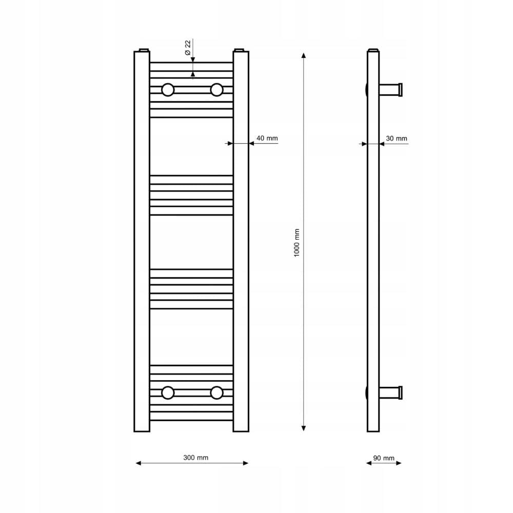 Grzejnik łazienkowy czarny drabinkowy 30 x 100 cm montaż 180 Breno