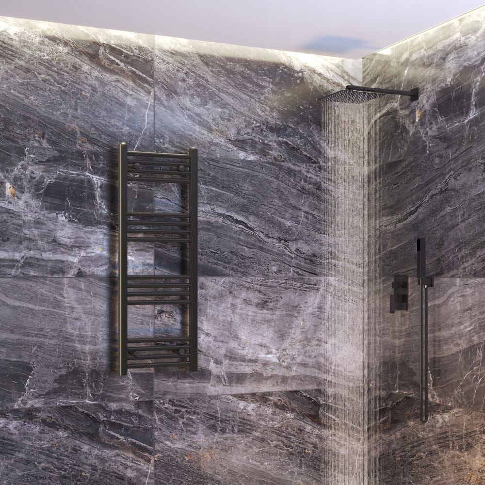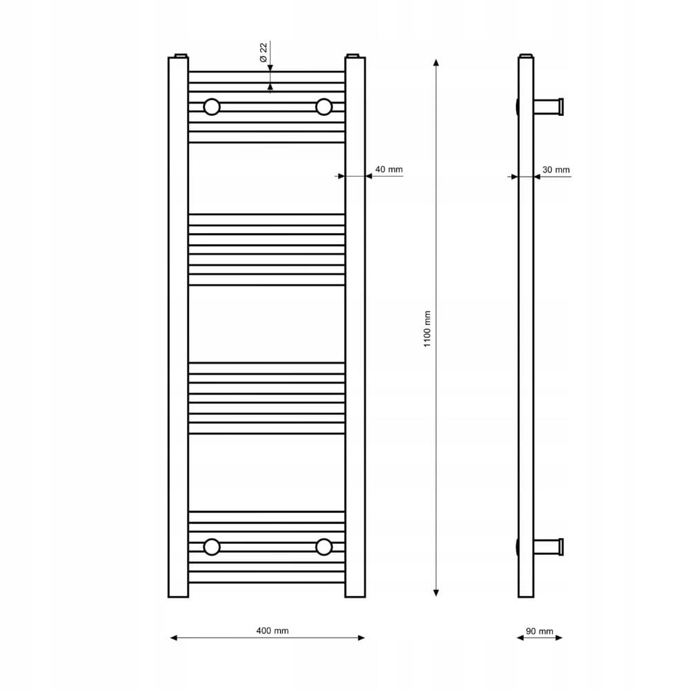 Grzejnik łazienkowy czarny drabinkowy 40 x 110 cm montaż 180 Breno