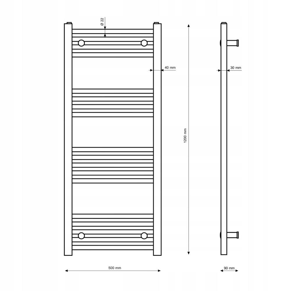 Grzejnik łazienkowy czarny drabinkowy 50 x 120 cm montaż 180 Breno