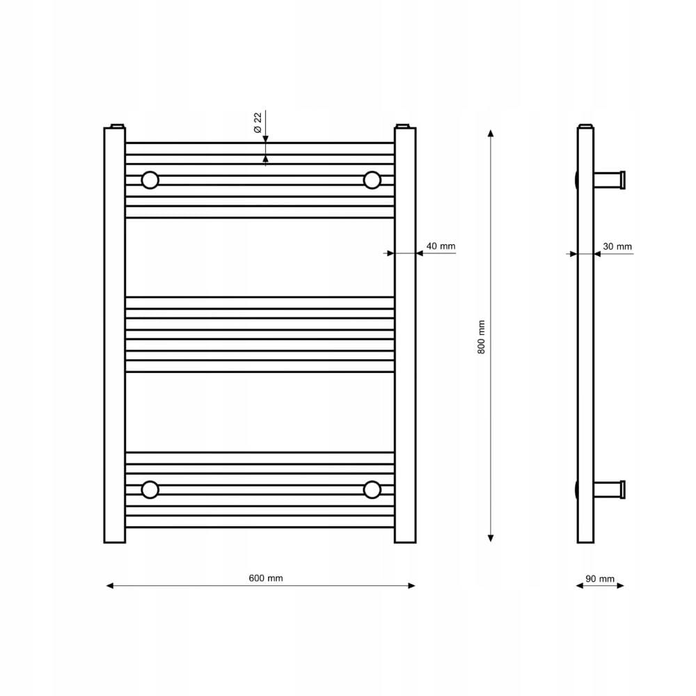 Grzejnik łazienkowy czarny drabinkowy 60 x 80 cm montaż 180 Breno