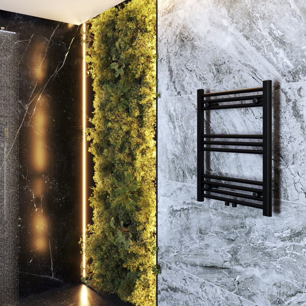 Funkcjonalny, czarny grzejnik łazienkowy w stylu drabinkowym to idealne rozwiązanie do nowoczesnych wnętrz. Model Raven zapewnia wydajne ogrzewanie i trwałość na lata. Jego minimalistyczny design dodaje wnętrzu charakteru i elegancji. Grzejnik jest przystosowany zarówno do podłączenia centralnego ogrzewania, jak i opcjonalnej grzałki elektrycznej, co pozwala na jego używanie przez cały rok.