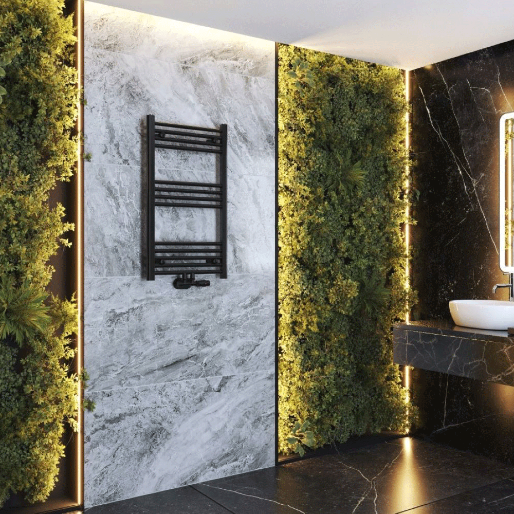 Funkcjonalny, czarny grzejnik łazienkowy w stylu drabinkowym to idealne rozwiązanie do nowoczesnych wnętrz. Model Raven zapewnia wydajne ogrzewanie i trwałość na lata. Jego minimalistyczny design dodaje wnętrzu charakteru i elegancji. Grzejnik jest przystosowany zarówno do podłączenia centralnego ogrzewania, jak i opcjonalnej grzałki elektrycznej, co pozwala na jego używanie przez cały rok.