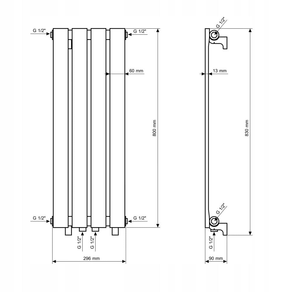 Grzejnik pionowy ozdobny Fero 800 x 296 biały 278W