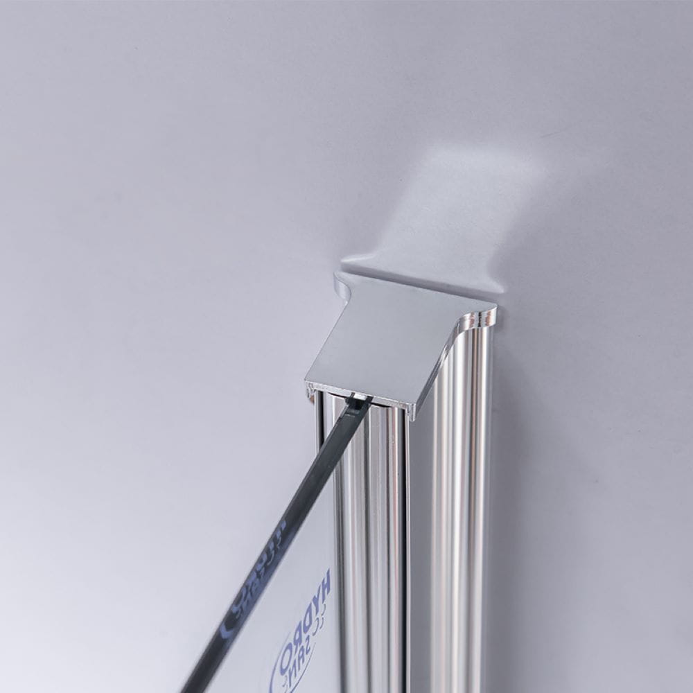 Zestaw zawiera: szyby z technologią NANO GLASS o grubości 6 mm, aluminiowe profile z regulacją 20 mm, komplet wysokiej jakości uszczelek, komplet śrub montażowych oraz górne mocowanie bocznej ścianki.