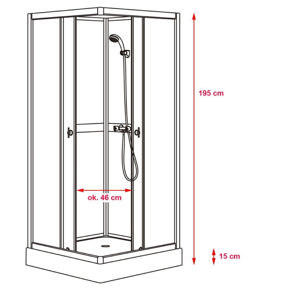 Zestaw zawiera: bezpieczne hartowane szkło o grubości 5 mm, zestaw prysznicowy, przełącznik zmiany intensywności wody, regulator ciepłej/zimnej wody, półka na przybory kosmetyczne, uszczelki, klamki do otwierania oraz brodzik.