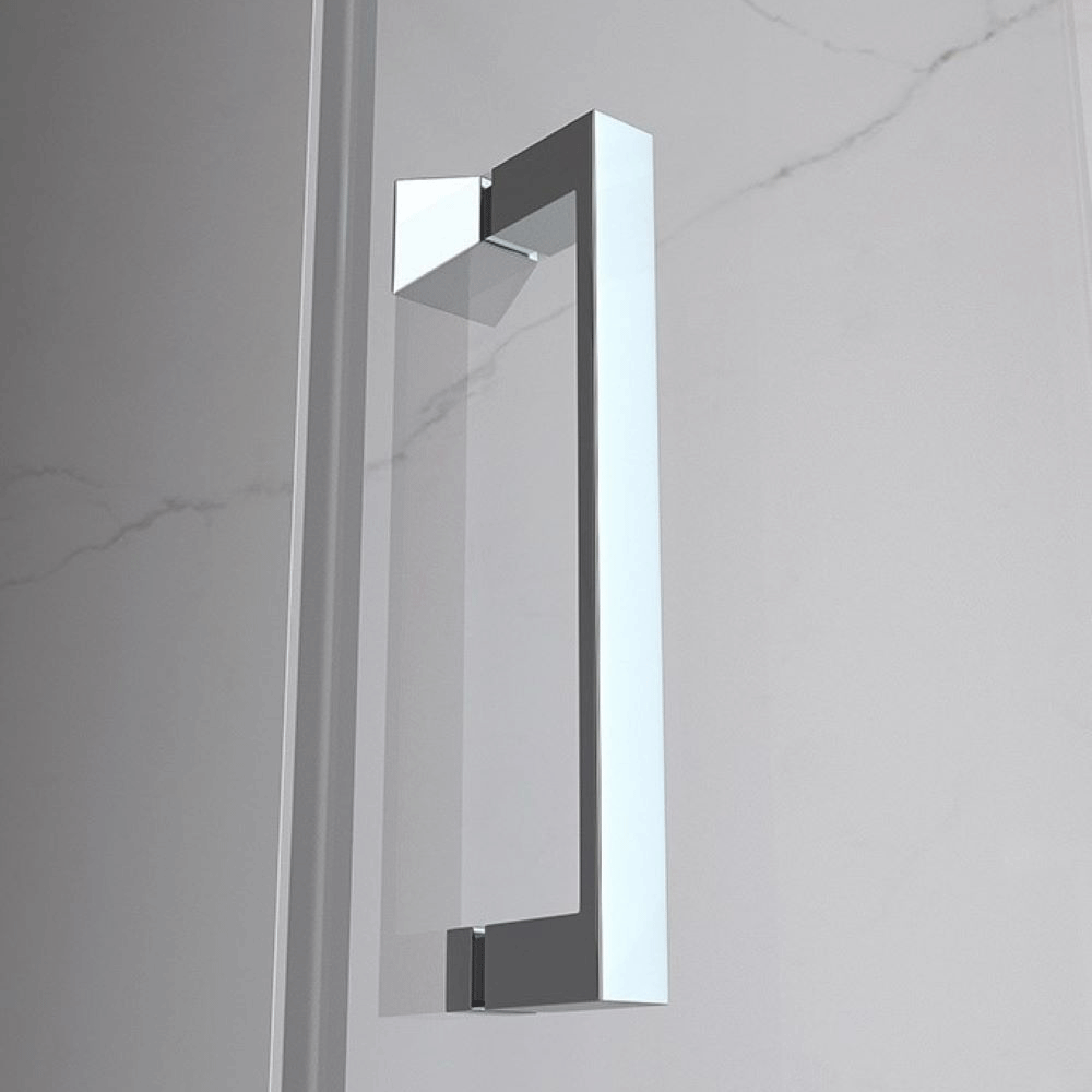 Zestaw zawiera: szyby z technologią NANO GLASS o grubości 6 mm, aluminiowe profile z regulacją 20 mm, podwójne stalowe rączki, górne mocowanie bocznej ścianki, przezroczyste uszczelki, komplet śrub montażowych, magnetyczne uszczelki PCV samodomykające się oraz aluminiowy próg.