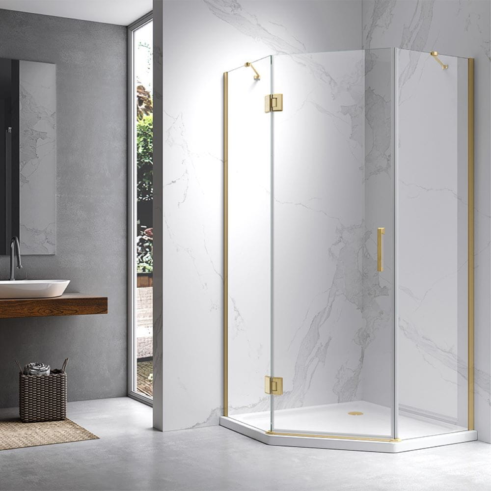 Kabina prysznicowa pięciokątna KZ10C złota szczotkowana 100 x 100 cm