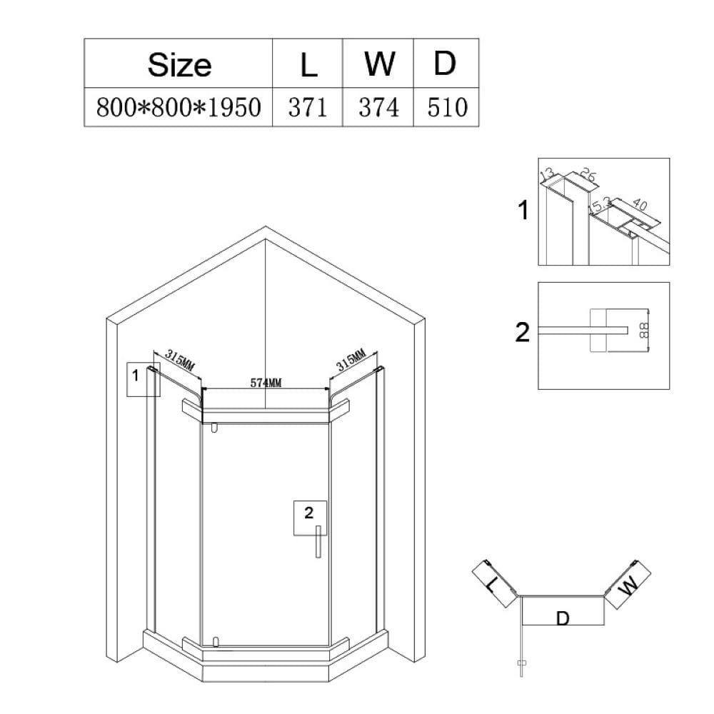 Kabina prysznicowa pięciokątna KZ91A złota 80 x 80 cm