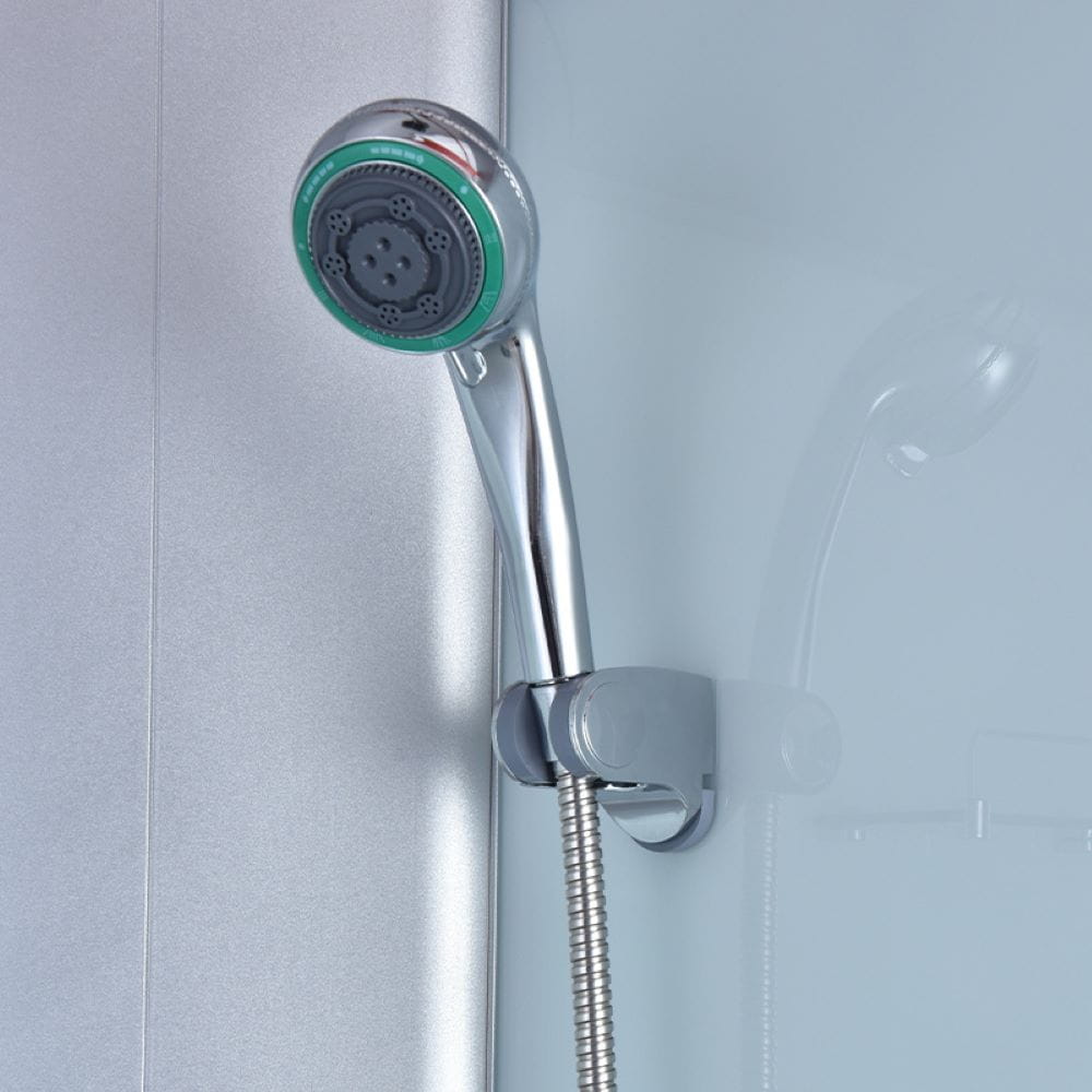 Zestaw zawiera: bezpieczne hartowane szkło o grubości 5 mm, zestaw prysznicowy, przełącznik zmiany intensywności wody, regulator ciepłej/zimnej wody, półka na przybory kosmetyczne, uszczelki, klamki do otwierania oraz brodzik.