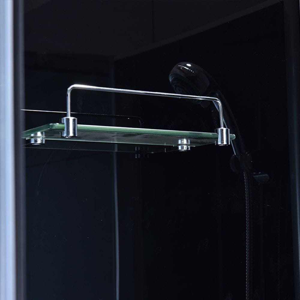 Zestaw zawiera: bezpieczne hartowane szkło o grubości 5 mm, zestaw prysznicowy, przełącznik zmiany intensywności wody, regulator ciepłej/zimnej wody, półka na przybory kosmetyczne, uszczelki, klamki do otwierania oraz brodzik.