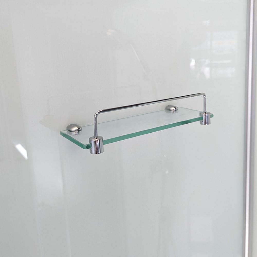 Zestaw zawiera: bezpieczne hartowane szkło o grubości 5 mm, zestaw prysznicowy, przełącznik zmiany intensywności wody, regulator ciepłej/zimnej wody, półka na przybory kosmetyczne, uszczelki, klamki do otwierania oraz brodzik.