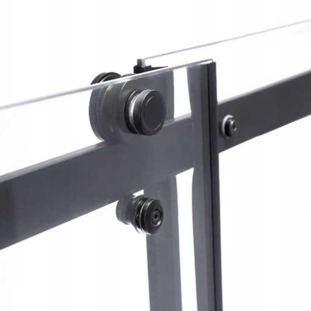Zestaw zawiera: szyby z technologią NANO GLASS o grubości 8 mm, aluminiowe profile z regulacją 20 mm, uchwyty do otwierania ze stali nierdzewnej podwójne, stalowe rolki, listwa progowa aluminiowa w kolorze czarnym, komplet śrub montażowy, komplet wysokiej jakości uszczelek oraz chciche zamykanie drzwi “Soft closing”.