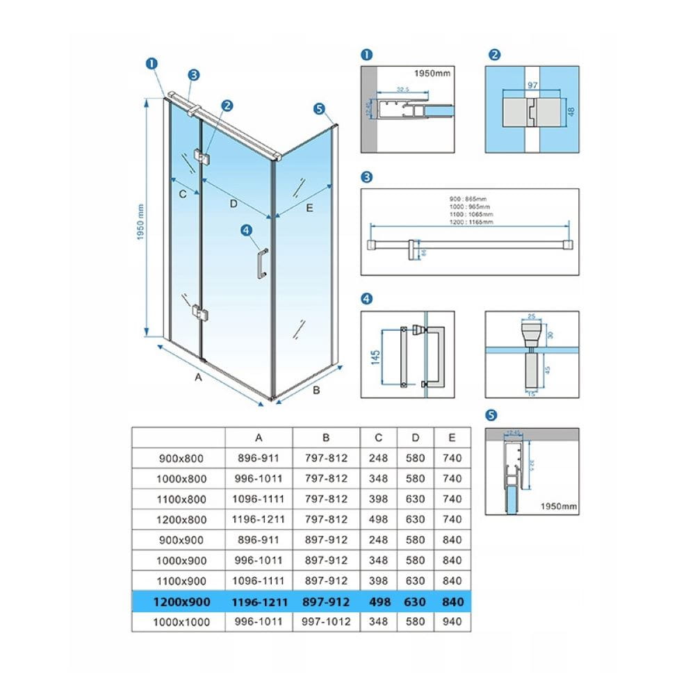 Zestaw zawiera: szyby z technologią NANO GLASS o grubości 6 mm, aluminiowe profile z regulacją 15 mm, stalowe rączki, górne mocowanie ścianek (reling), zestaw uszczelek, komplet śrub montażowych oraz aluminiowy próg.