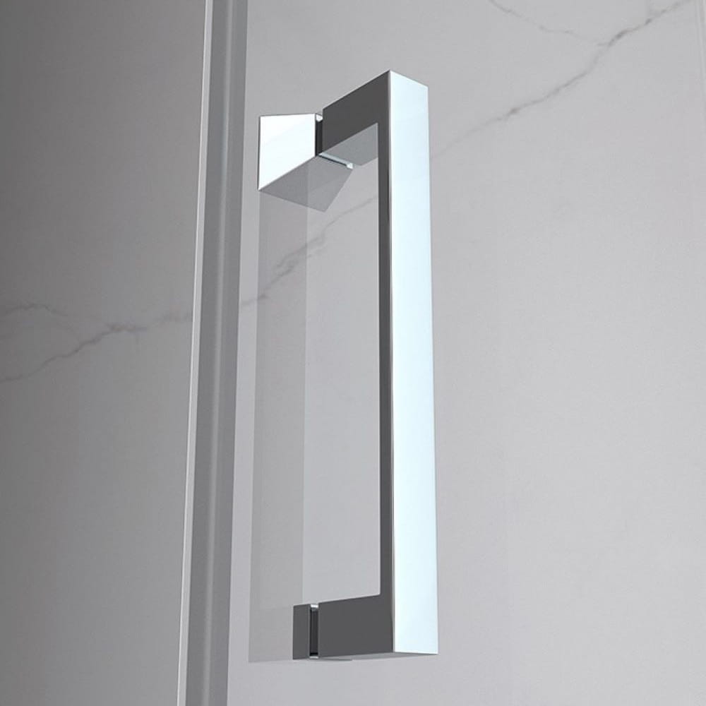 Zestaw zawiera: szyby z technologią NANO GLASS o grubości 6 mm, aluminiowe profile z regulacją 15 mm, stalowe rączki, zestaw uszczelek, śruby montażowe, aluminiowy próg oraz zawiasy do szyb. Kabina posiada system unoszenia drzwi podczas ich otwierania UP/DOWN.