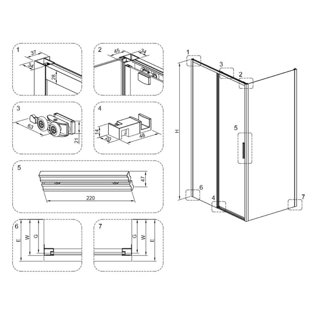 Zestaw zawiera: szyby z technologią NANO GLASS o grubości mm, aluminiowe profile Super Slim z regulacją 20 mm, uchwyt ze stopy cynku, komplet wysokiej jakości uszczelek, komplet śrub montażowych, rolka ze stali nierdzewnej z chwytakiem stabilizującym, innowacyjne rozwiązanie zapobiegające samoczynnemu otwieraniu i zapewniające płynność działania oraz uszczelkę magnetyczną.