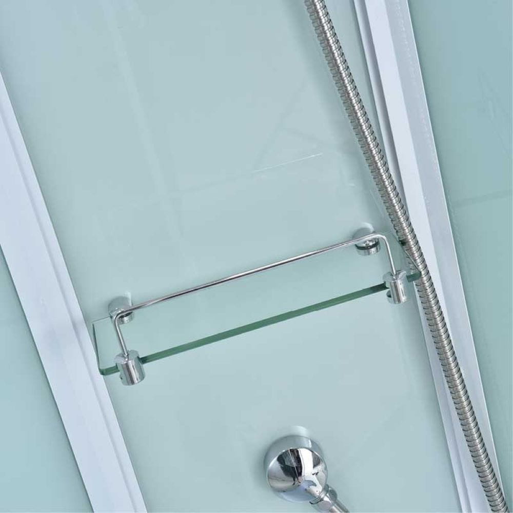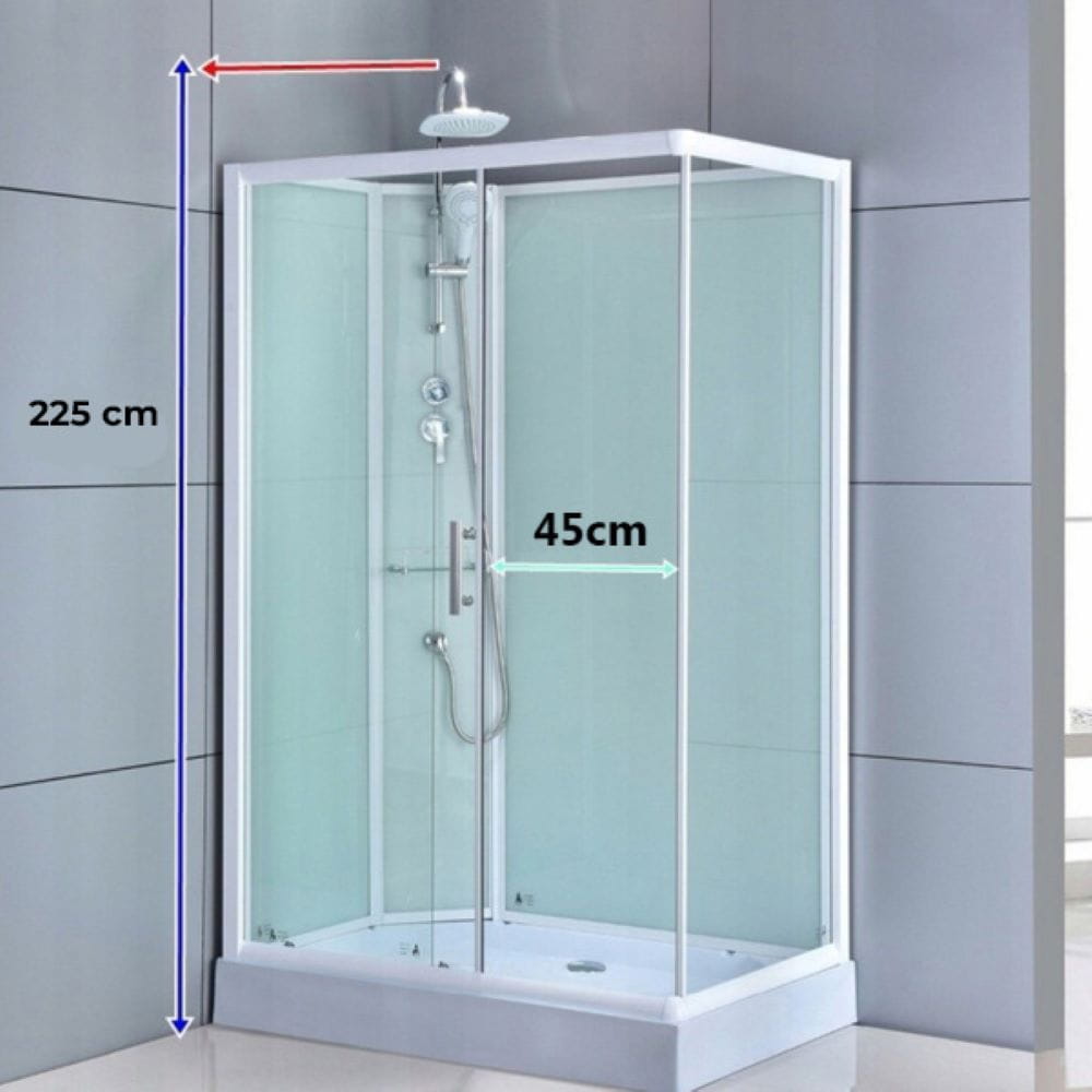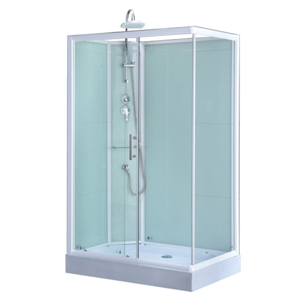 Zestaw zawiera: bezpieczne hartowane szkło o grubości 5 mm, zestaw prysznicowy, słuchawka prysznicowa wielofunkcyjna, przełącznik zmiany intensywności wody, regulator ciepłej/zimnej wody, półka na przybory kosmetyczne, uszczelki, klamki do otwierania oraz brodzik.