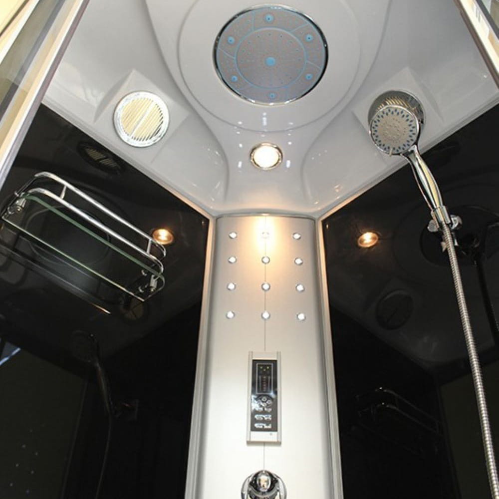 Zestaw zawiera: bezpieczne hartowane szkło o grubości 5 mm, panel z wbudowanym radiem, prysznic górny ze słuchawką, przełącznik zmiany intensywności wody, regulator ciepłej/zimnej wody, półka na przybory kosmetyczne, siedzisko, oświetlenie halogenowe, światło LED na panelu (12 sztuk), masażer stóp, dwa pojemniki na szampon lub płyn, wentylator, głośnik, odpływ wody, poręcz oraz sauna.